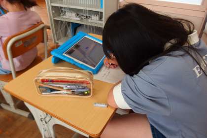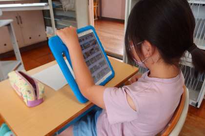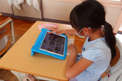 タブレットを使って、調べ学習をしています。