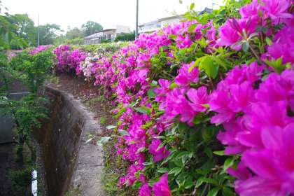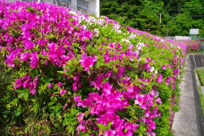 連休中の学校はとても静かです。 ツツジが花盛りです。