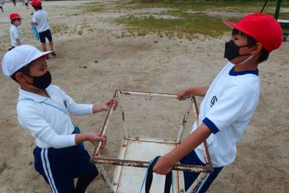 授業の終わりに、進んで片づけを手伝ってくれている男子2名です。