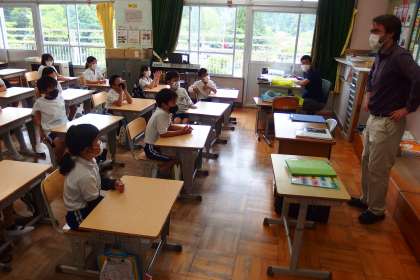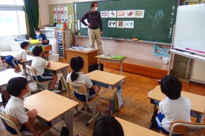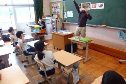 2年生の外国語活動の授業です。 ALTの先生との初めての活動でした。