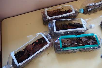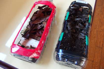 2年生のダンゴムシの飼育ケースに土や落ち葉が入っていました。