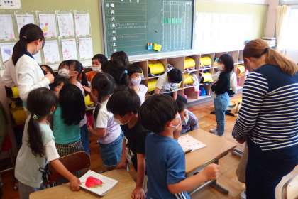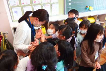 5月11日の東広瀬小学校(18) 公開日 2022/05/11 更新日 2022/05/11 We Love 東広瀬(地域学校共働本部) 久しぶりに会ったこども園、幼稚園の先生方を取り囲む1年生のみなさん。 なつかしい先生と話すことができて、とてもうれしそうでした。