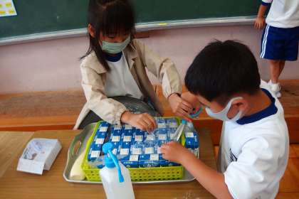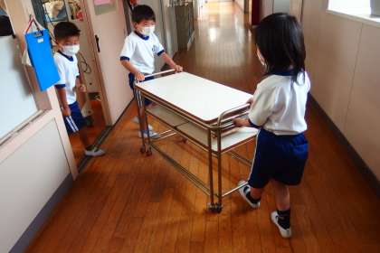 1年生も自分たちだけで配膳ができるようになってきました。