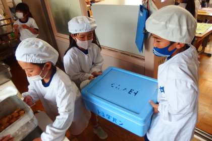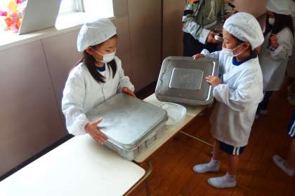 1年生の給食の配膳の様子です。