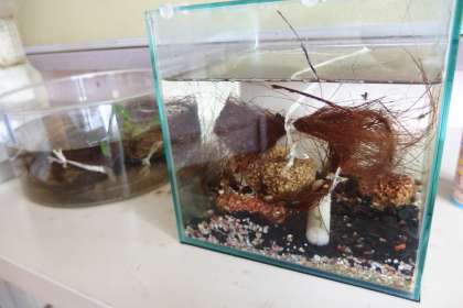 5月15日の東広瀬小学校(1) 公開日 2022/05/15 更新日 2022/05/17 活動の様子 各学年で様々な生き物を飼育しています。 上の写真は5年生のメダカの水槽です。 メダカはまだ卵です。 下の写真は4年生のクサガメです。 金曜日の帰りに、子どもたちが大量のエサを与えて帰っていきましたが、日曜日に見てみるとすべて平らげており、ぐんぐんと大きくなっていきそうです。 タブレットを活用した飼育日記などに挑戦できるといいですね。