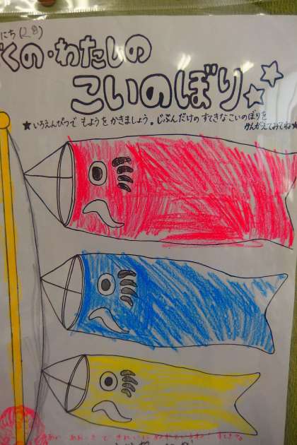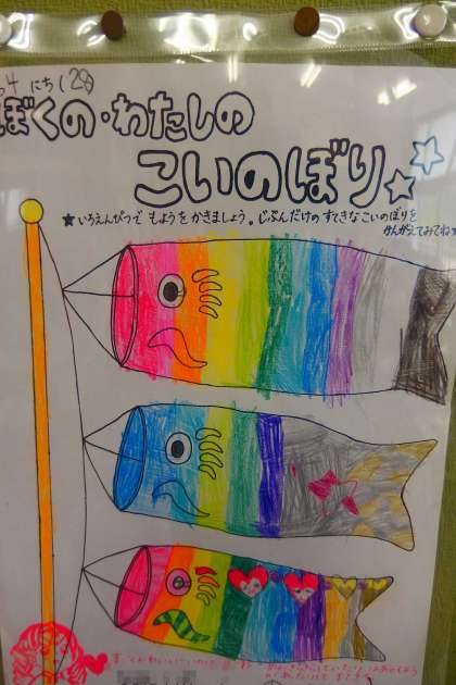5月16日の東広瀬小学校(6) 公開日 2022/05/16 更新日 2022/05/16 活動の様子 1年生の教室で見つけたかわいいこいのぼり。 タイミングを逃したホームページでの紹介で申し訳ありません。