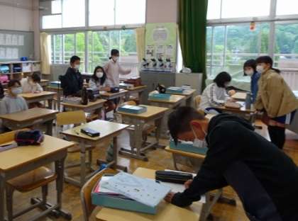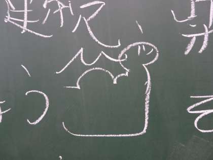 いろんな学年の教室に声をかけてまわりました。 黒板には、こんなイラストが…… なんでしょう?