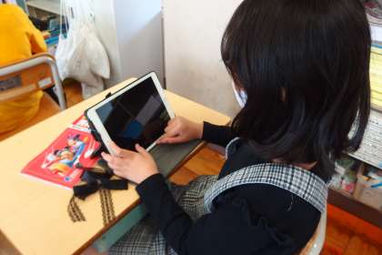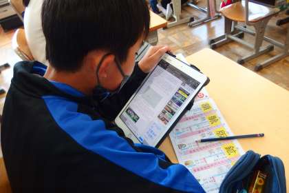 この2人は漢字の熟語を調べるのにタブレットを活用していました。