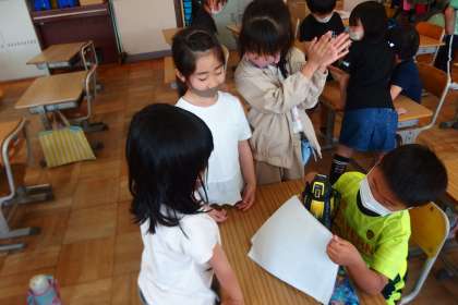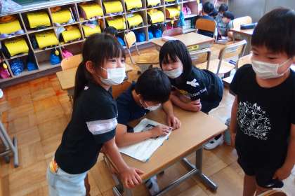 1年生の総合的な学習の時間です。 インタビュー活動の練習中でした。