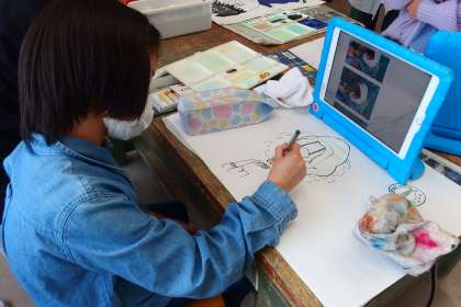 5月18日の東広瀬小学校(42) 公開日 2022/05/19 更新日 2022/05/19 活動の様子 4年生の図工の授業です。 現物を間近で見ることができない対象物を、タブレットで検索して表示して、水彩画で描いています。