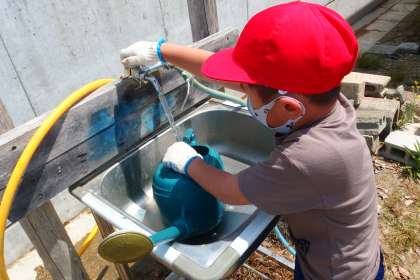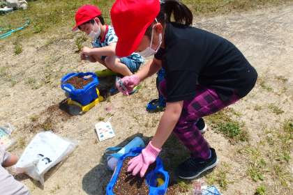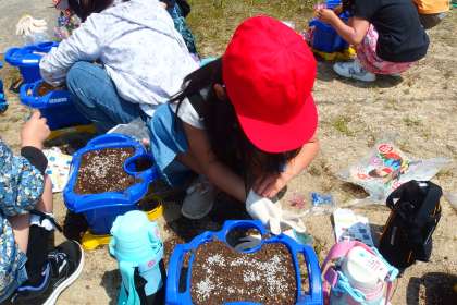 1年生の生活科の授業です。 アサガオの種まきをしました。