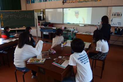 鑑賞の授業で、タブレットから動画を流して見ていました。