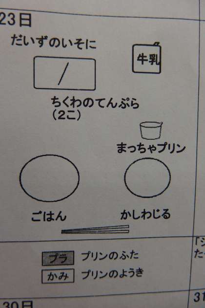 今日の給食のメニューです。 (まちがいさがし・・・)
