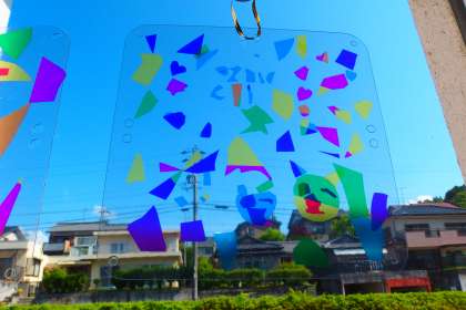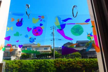 ステンドグラスは2年生の作品です。