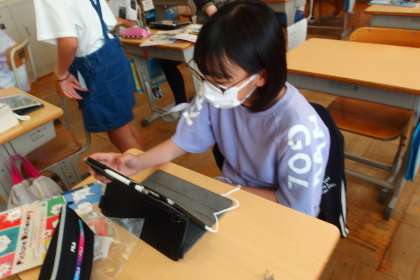 5月24日の東広瀬小学校(28) 公開日 2022/05/24 更新日 2022/05/24 活動の様子 6年生の英語の授業です。 英語の授業では、児童一人一人がタブレットでデジタル教科書を使えるようになっています。