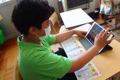 疑問に思った点を、タブレットで調べているところです。