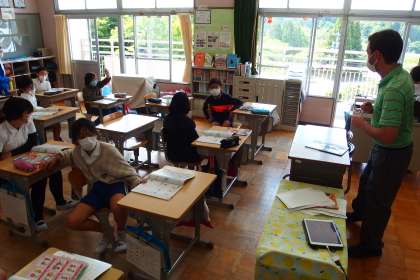 5月25日の東広瀬小学校(18) 公開日 2022/05/25 更新日 2022/05/25 活動の様子 6年生の英語の授業です。 ALTもタブレットのデジタル教科書を活用して授業を進めてくれています。