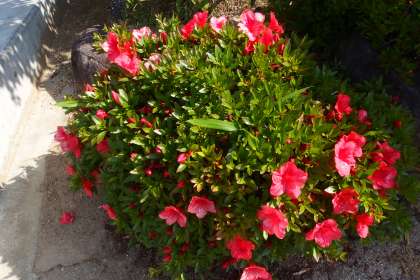 運動場の周辺や校舎北側のツツジは、ずいぶん前に咲き終わってしまいましたが、玄関横の花が小ぶりの昔ながらのツツジは、これからが見ごろのようです。
