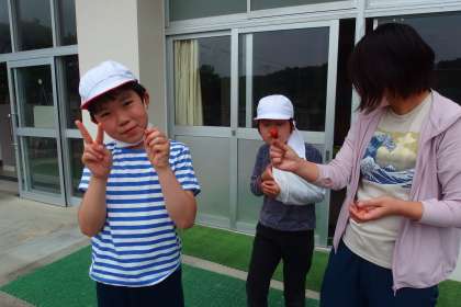 特別支援学級の子たちが育てたイチゴを収穫していました。