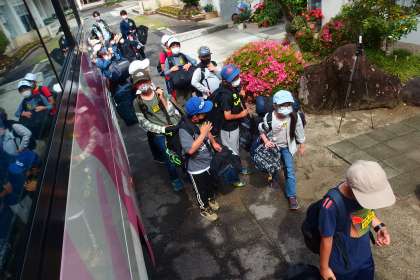 バスに乗り込みます。