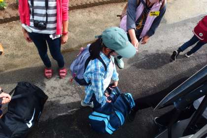 バスに荷物を積んでいるところです。