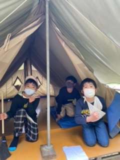 5月27日 5年生キャンプ 公開日 2022/05/27 更新日 2022/05/27 活動の様子 いよいよテントに入ります。 どうやら、今年度は、石野連合が初めてテントを使用するのだそうです。 しかも、昨日の雨…掃除からです。