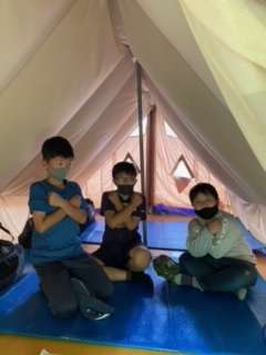?テントの掃除が終わったら、荷物を運んだりマットを敷いたりします。