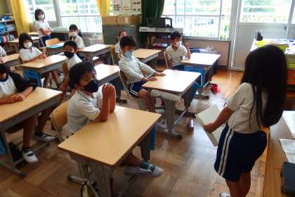 1年生と2年生の朝の会の様子です。