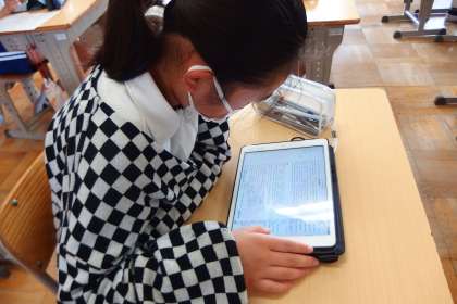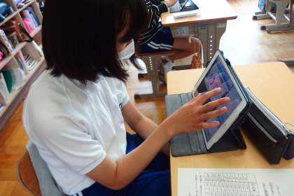 6年生がタブレットで健康観察のお試し入力をしているところです。