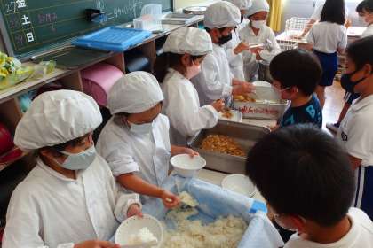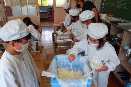 2年生と3年生の給食の配膳の様子です。