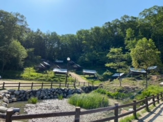 5年生キャンプ2日目01 公開日 2022/05/28 更新日 2022/05/28 活動の様子 活動を待つ現場の風景です。 とても気持ちのよい日です。 昨日の薪割り、火おこしで使った木材ごやは、今は静かです。