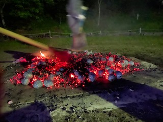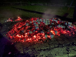 5月27日 5年生 キャンプ99 公開日 2022/05/30 更新日 2022/05/30 活動の様子 キャンプファイヤーの後の火を熾火にして、じゃがバターを作りました。 この熾火が絶妙で、おいしく仕上がりました。 濡らした新聞紙でじゃがいもを包んだ具合も、上手くいった要因という話がありました。