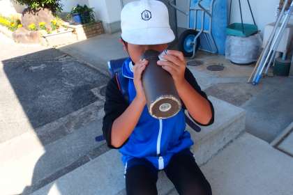 学校に登校して、すぐに水分補給。