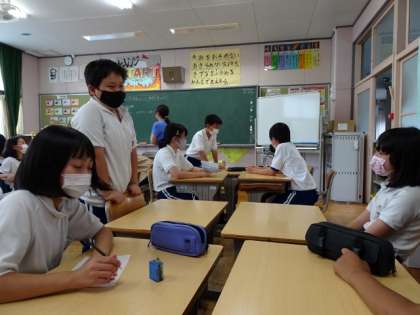 5月31日の東広瀬小学校(13) 公開日 2022/05/31 更新日 2022/05/31 活動の様子 5年生が、キャンプの振り返りをするというので見に行きました。 ちょうど、6年生が教室から出てくるところでした。 「おかえり」のメッセージビデオを流してお迎えしたとのこと。見たかったな。 黒板にも、6年生からのメッセージがいっぱいありました。 広瀬っ子のあたたかいつながりですね。 そのあと、グループで振り返りをしました。