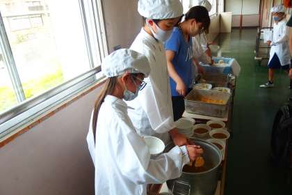 5年生の給食の配膳の様子です。