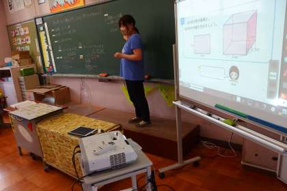 先生がタブレットから応用問題を提示して、それに取り組んでいました。