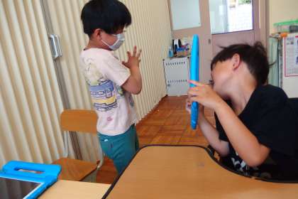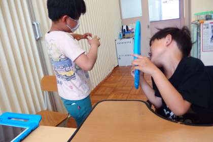 特別支援学級の授業の様子です。 タブレットを使って、動画編集に挑戦中です。