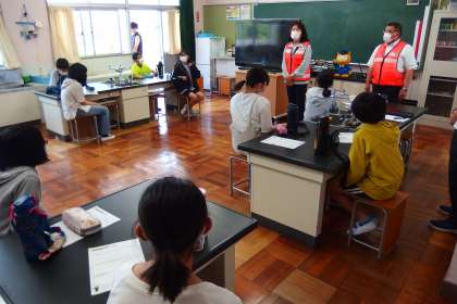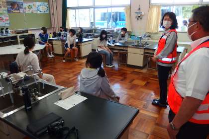 本日午後、薬物乱用防止教室を実施しました。 写真は、6年生が講話を受けているところです。