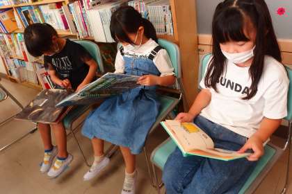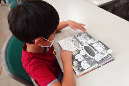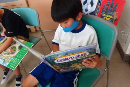 図書館で読書にいそしむ1年生です。