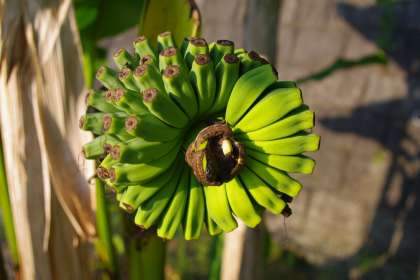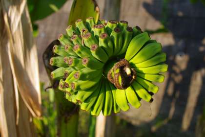 運動場のバナナの木です。 バナナが実り始めました。 食べることはできないと思いますが・・・