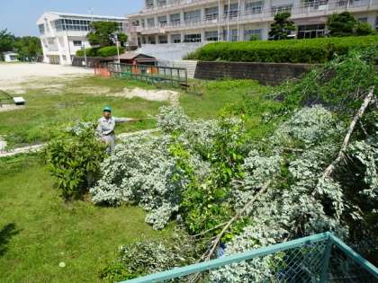 それを見て、校内整備員さんがよく育つようにと太陽光を遮る枝を選定してくださいました。