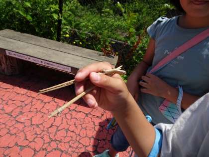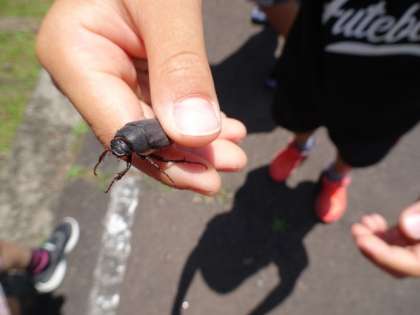 途中で、目に入るものは子どもならではのものです。 生き物あり、植物あり、人間の落し物あり……