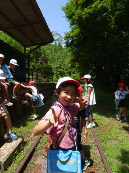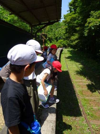 線路に降りてみた2年生。