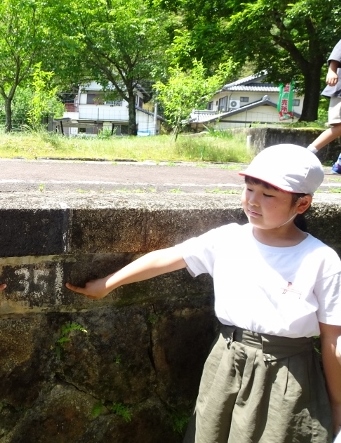 ホームの壁に、何かの数字が…… ヒミツを見つけたようです。