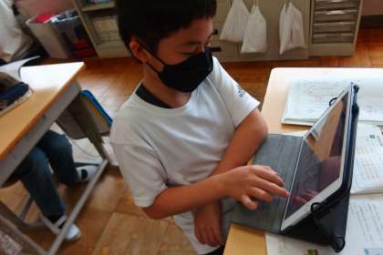 6年生の算数の授業です。 タブレットを使って復習をしています。