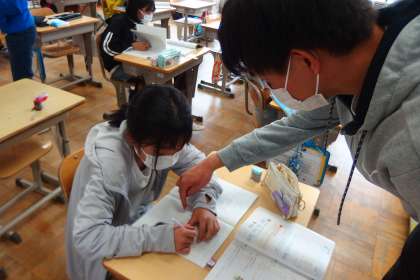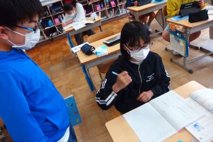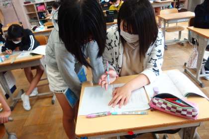6年生の算数の授業です。 教え合い、学び合いで理解を深めています。