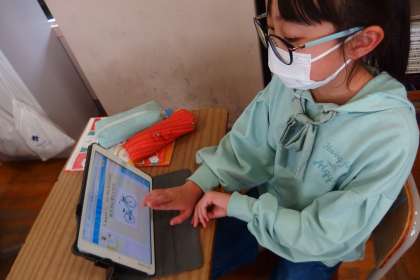 6月6日の東広瀬小学校(20) 公開日 2022/06/06 更新日 2022/06/07 活動の様子 5年生の英語の授業です。 タブレットの発表ノートを使って、ALTの先生との会話原稿を作っています。