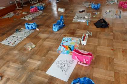 6月6日の東広瀬小学校(29) 公開日 2022/06/06 更新日 2022/06/06 活動の様子 3年生の図工の授業です。 屋外で写生の予定でしたが、雨降りでかなわず、室内で場所を広くとって写生をしていこうとして、写真のような状況になりました。 このときは、デザインセットを洗いに行っていて、誰もいない状態です。