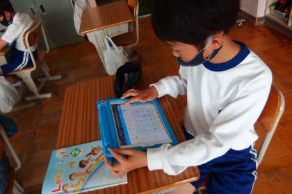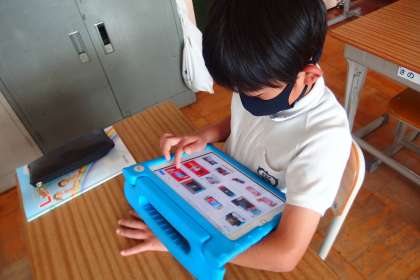 6月6日の東広瀬小学校(43) 公開日 2022/06/06 更新日 2022/06/06 活動の様子 4年生の外国語活動の授業です。 タブレットの発表ノートを使って、ALTの先生との会話の準備をしています。