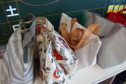 今日、2年生、3年生、6年生はささゆりの里へ校外学習です。 ロッカーの上にはお弁当がずらり。